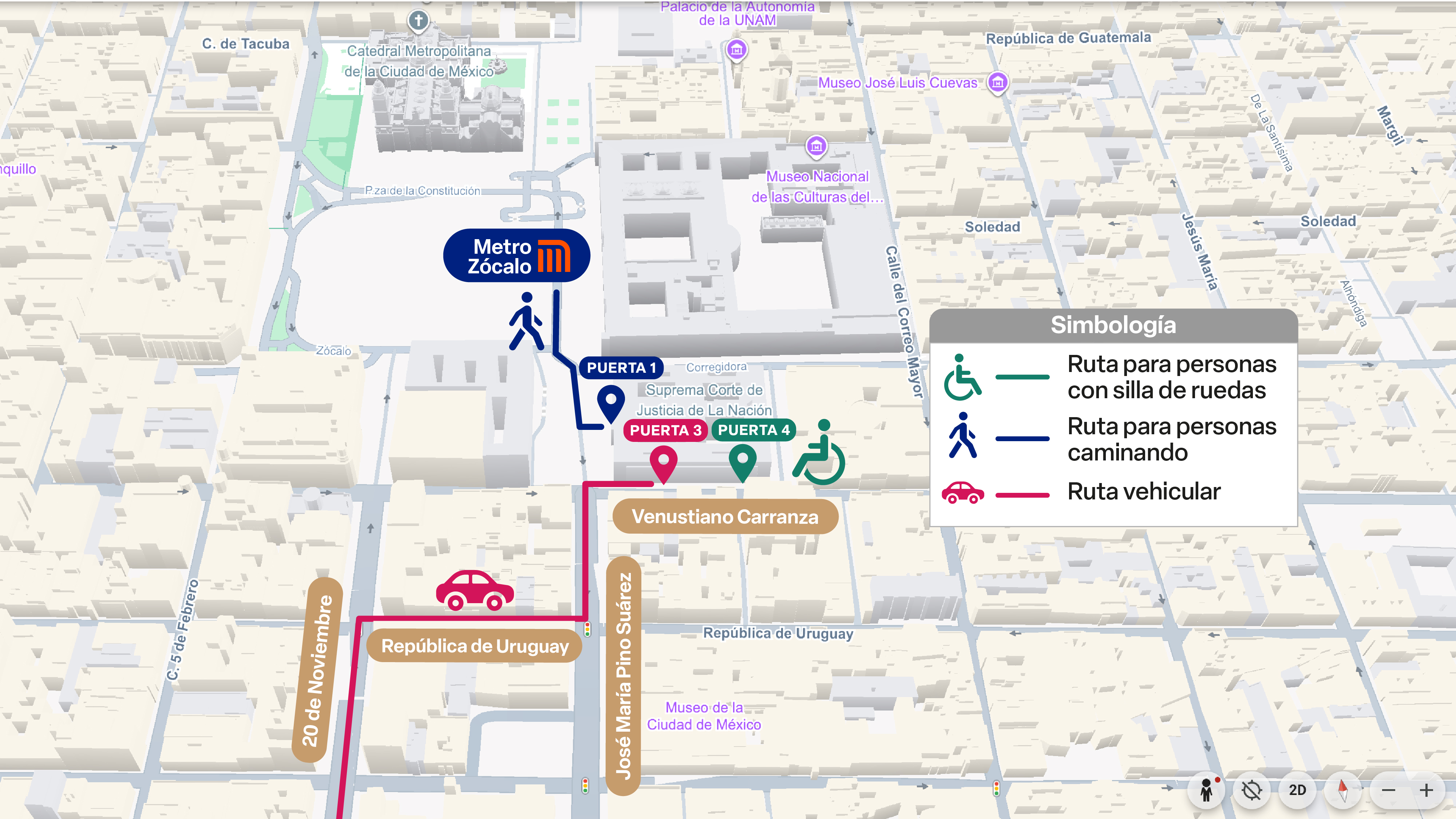 Actualmente, hay un bloqueo sobre Venustiano Carranza que impide la llegada en coche por lo que la ruta de acceso debe ser de la siguiente forma: Avanzar sobre Avenida 20 de noviembre, dar vuelta a la derecha en República de Uruguay y después, vuelta a la izquierda en contrasentido en calle José María Pino Suárez, luego dar vuelta a la derecha sobre Venustiano Carranza y llegarás a la puerta vehicular 3.